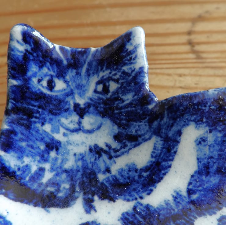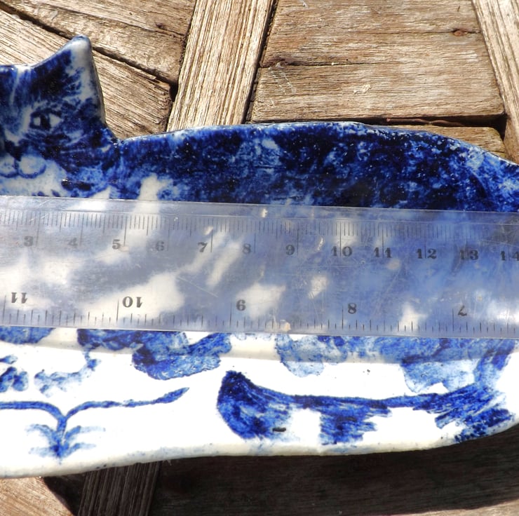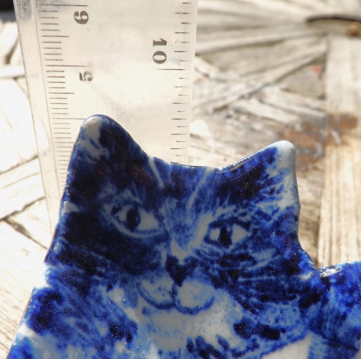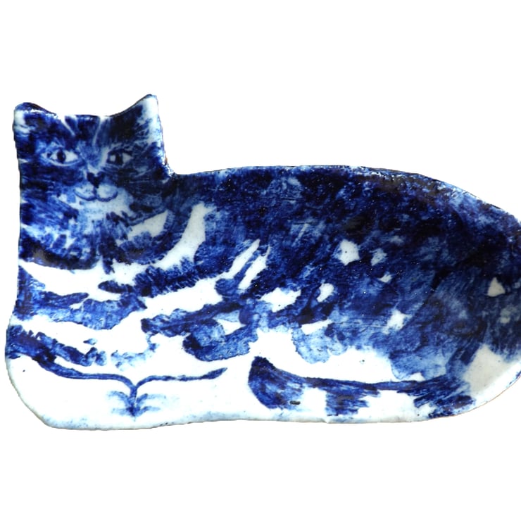 This beautiful blue and white cat can be used (as I do with mine) as a place to keep keys. It can also be used as a spoon rest, trinket dish, or for small items.