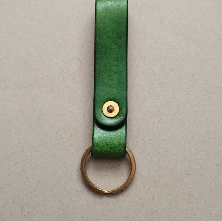 I love the combination of the shade of green, and how it combines with the brass saddle rivet and spilt ring...maybe you will, too!