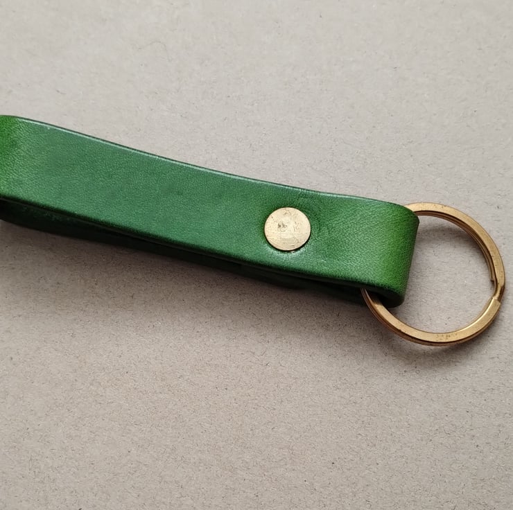 Leather Key Ring With Solid Brass Saddle Rivet And Flat Split Ring Heavy Duty