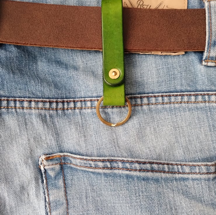 Whether used simply as a regular key ring, or as a belt dangler, it would make a highly practical and unique accessory for every day use. The belt shown is 40mm wide and it fits over it easily.