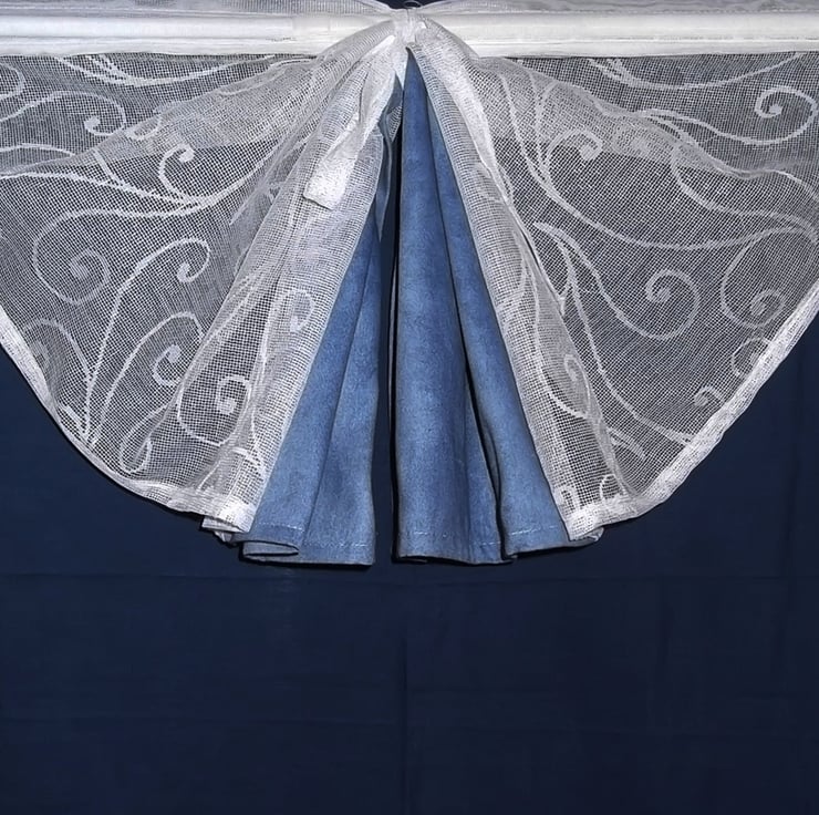 Small curtain Brise bise window panel Handmade Blue & White Unique