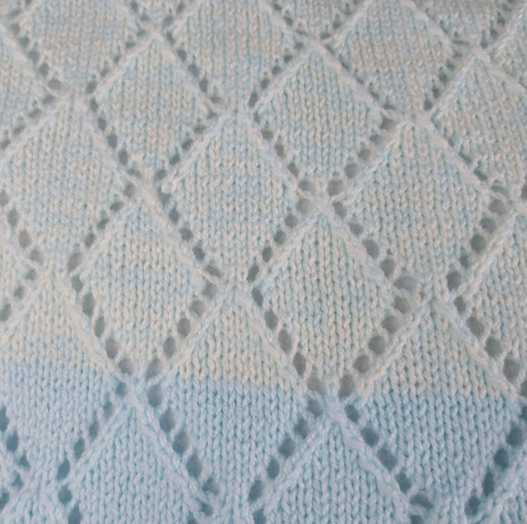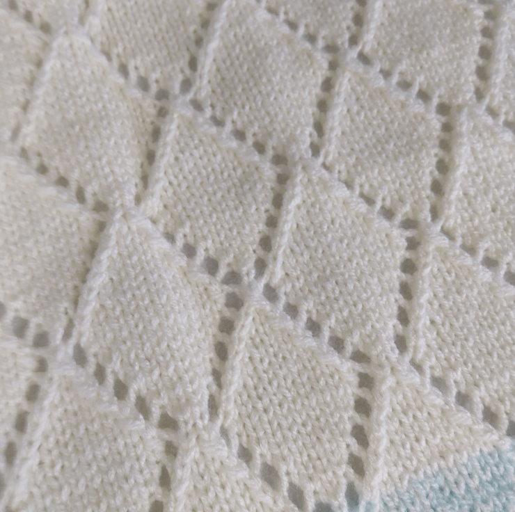 The Angelica Baby Blanket knitting pattern creates a beautifully textured blanket with a soft diamond lace design. It’s simple, elegant and perfect for gifting — whether for a baby shower, christening, or just because!