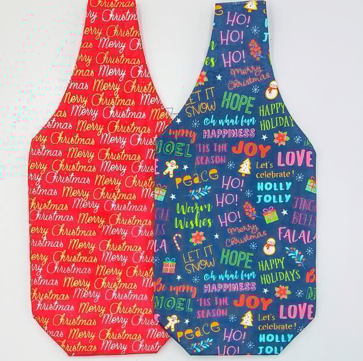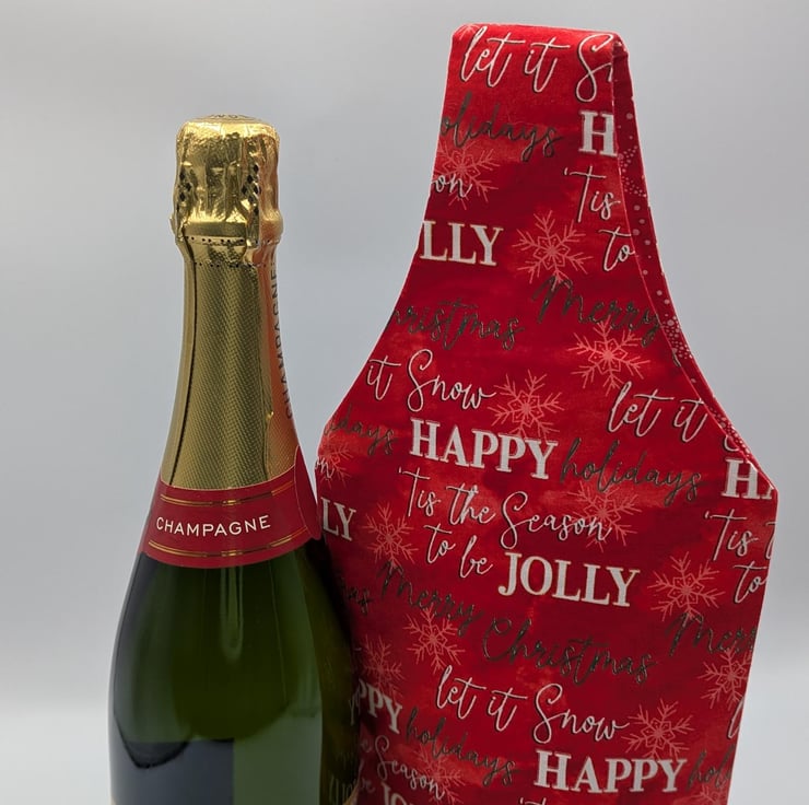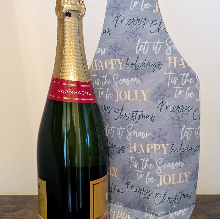 Handmade Christmas Cotton Bottle Bag – by NotBee4Ten Wrap your cheer in something charming.