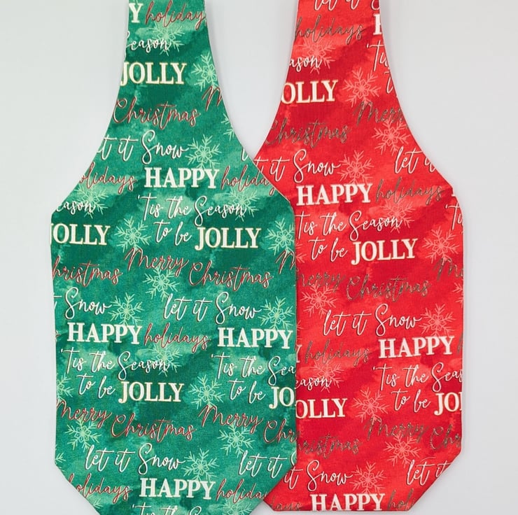 Add a sprinkle of holiday magic to your gift-giving with our reusable cotton bottle bag, handmade with love and a dash of festive flair. Featuring joyful phrases like “Let it Snow”, “Tis the Season to be Jolly”, and “Merry Christmas”, this bag is more than just a wrapit’s a celebration in fabric.