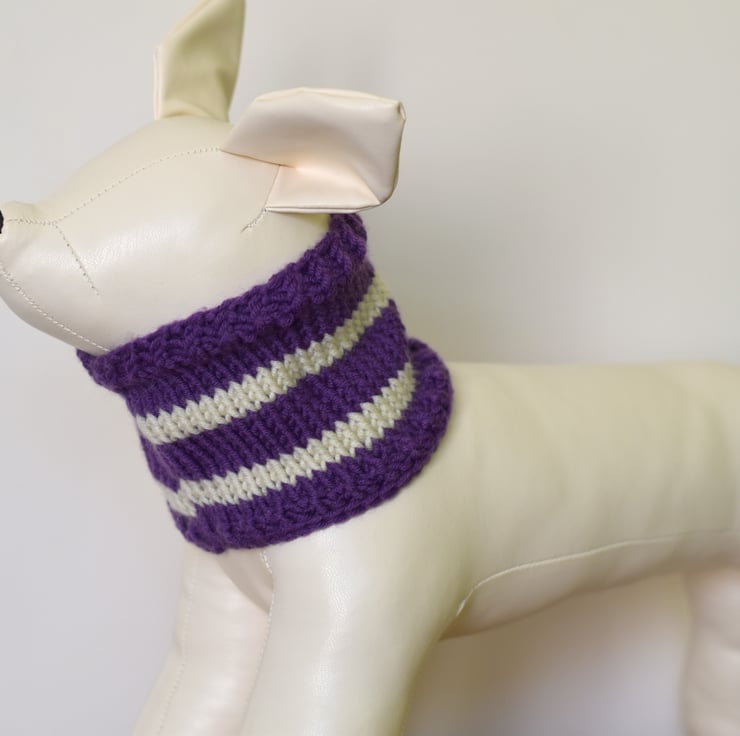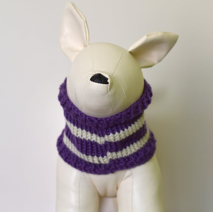 Hand Knitted Merino Wool Dog Snood - Striped neck Warmer for Dogs