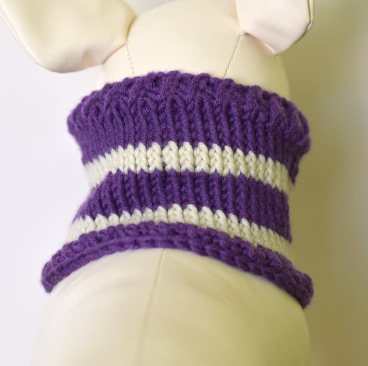 Keep your dog warm and cosy with this soft, hand-knitted snood made from 100% merino ultrawash wool (aran weight).