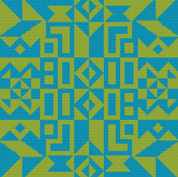 268B - Geometry Cross Stitch Pattern: Alexander Girard Tribal Art GREEN BLUE