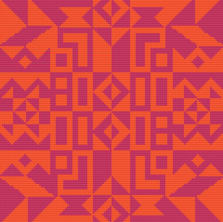 268C - Geometry Cross Stitch Pattern: Alexander Girard Tribal Art PINK ORANGE