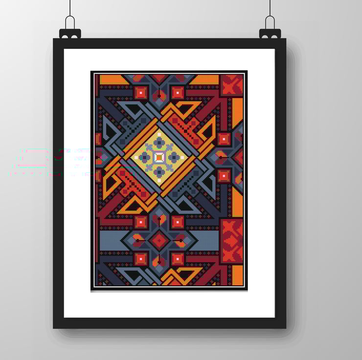 Cross Stitch Pattern - Frosted Window - Christopher Dresser Antique Reproduction 1876 - Colour stained glass - PDF counted chart 267A