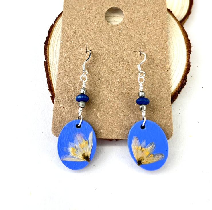 These real flower blue earrings are truly unique and will make a perfect gift for someone special for a birthday, anniversary or Christmas.