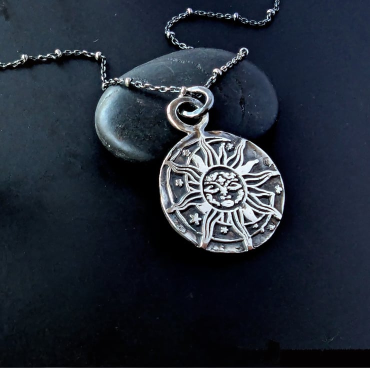 Sterling Silver Pirate Skull Compass and Sun, Moon and Stars Talisman pendant