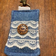 A snowman on a corduroy backing, lightly padded so soft to handle. 31/2" x 21/2". A split pin is ready for your keys.