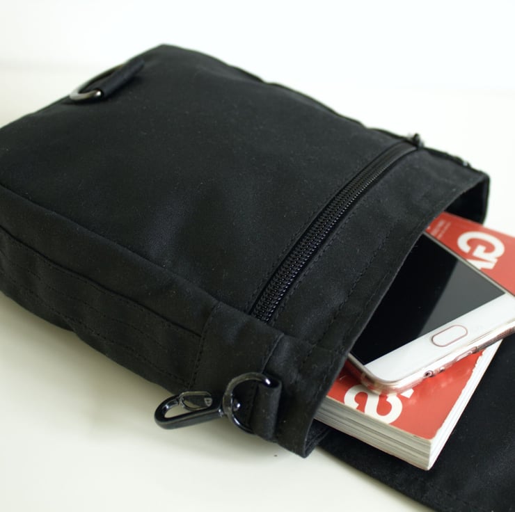 You can also wear it as a shoulder bag by attaching the adjustable shoulder strap. There is an inside sleeve pocket to keep your pen/travel card separate if you want. Plus, a zip pocket at the front provides a safe place for your passport/credit card. And the flap is secured with a strong snap fastener.