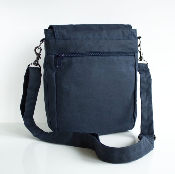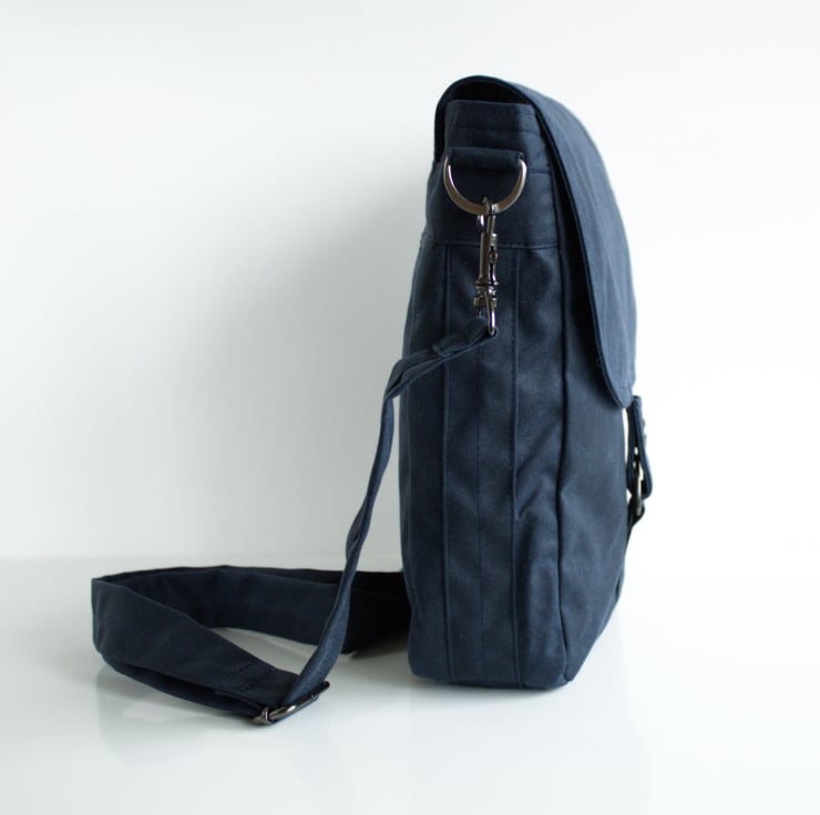 Crafted from navy blue 100% traditional waxed cotton canvas (sourced from Britain), the bag will develop a rich, characterful patina over time, all while maintaining its timeless durability. It is lined with soft, breathable cotton twill and comes with six custom lining colours and three metal hardware finishes to choose from so you can make this bag your own.