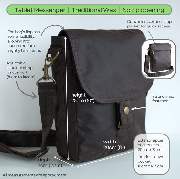 Upgrade your everyday bag with the Traditional Wax Canvas Tablet Messenger. Crafted for durability and style, this weather-resistant bag keeps your tablet safe and stylish no matter the adventure.