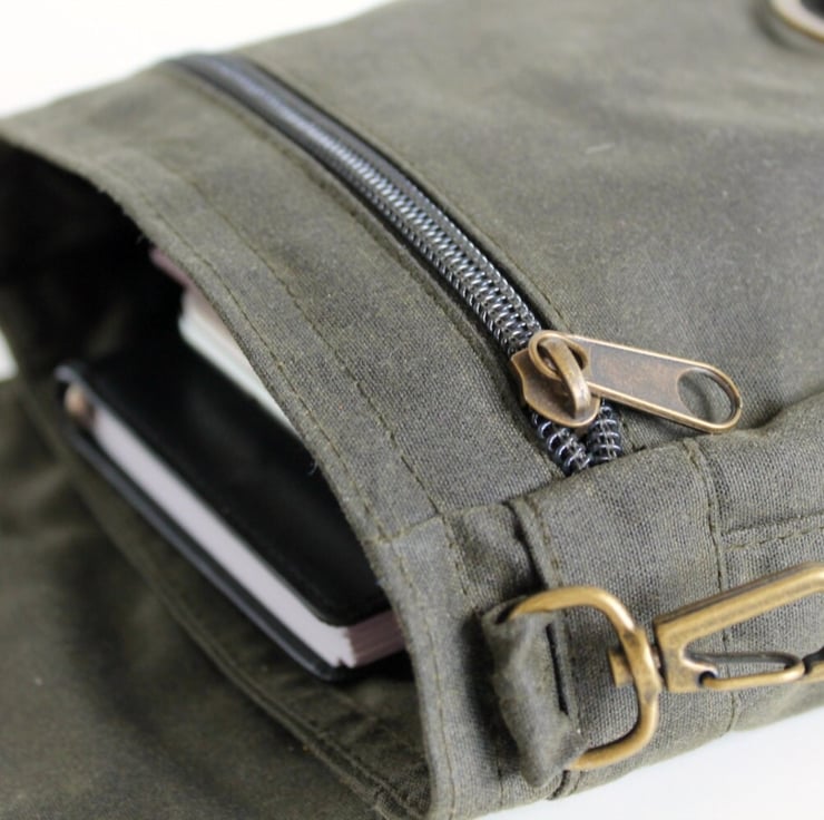 You can also wear it as a shoulder bag by attaching the adjustable shoulder strap. There is an inside sleeve pocket to keep your pen/travel card separate if you want. Plus, a zip pocket at the front provides a safe place for your passport/credit card. And the flap is secured with a strong snap fastener.