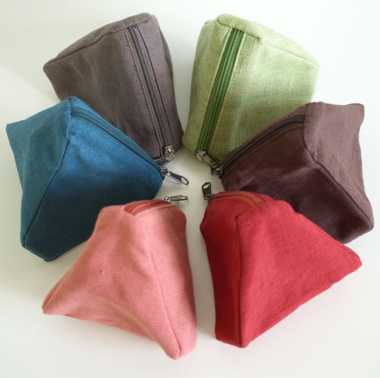 I love sushi and I have transformed this quirky shape into a cute practical pouch. This mini purse provides enough room for organising small items like lipstick, coins, keys, and cream. The opening is securely fastened with a zip.
