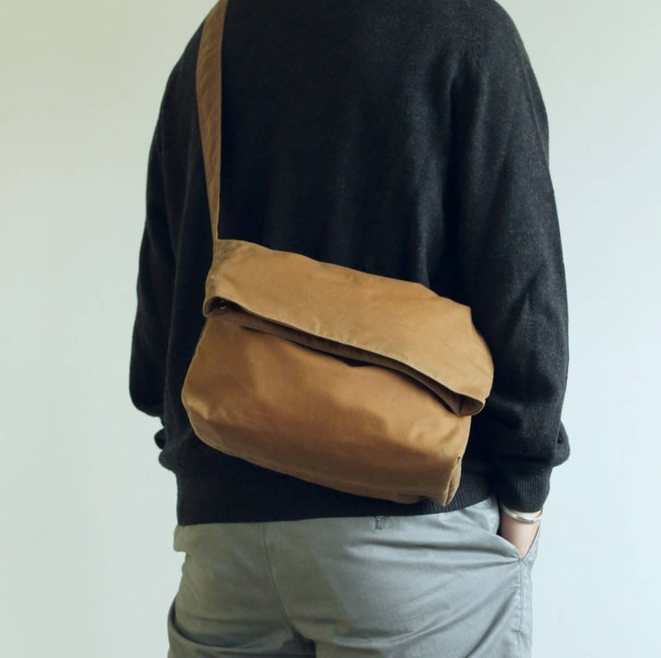 I developed the Minus fold top bag as I wanted a bag to grow with its contents. I am using a conventional bag shape, but added a folding top. It looks stylish whether you have small contents like a smartphone, iPad, diary or with bigger items like books, magazines, lunchbox etc... You may wear it as a shoulder bag using a shorter strap length, or use it as a cross shoulder messenger by extending the strap.