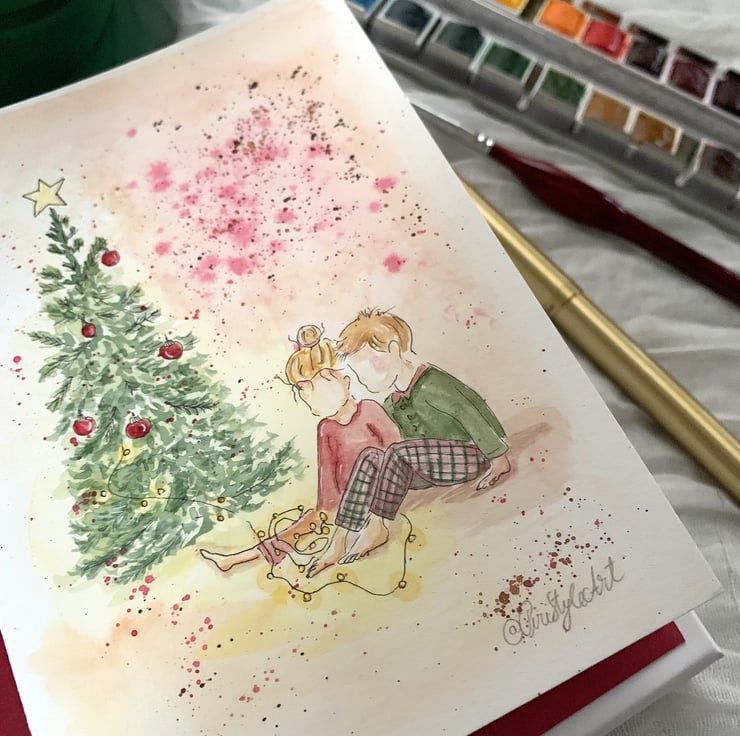 Inspired by the magic of Christmas that only children can bring into a home, I've painted this card in mind of having it in my calendar for 2026.