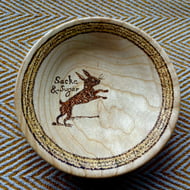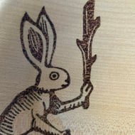 A turned, ash tea-light holder featuring one Celtic maze applied with pyrography.
