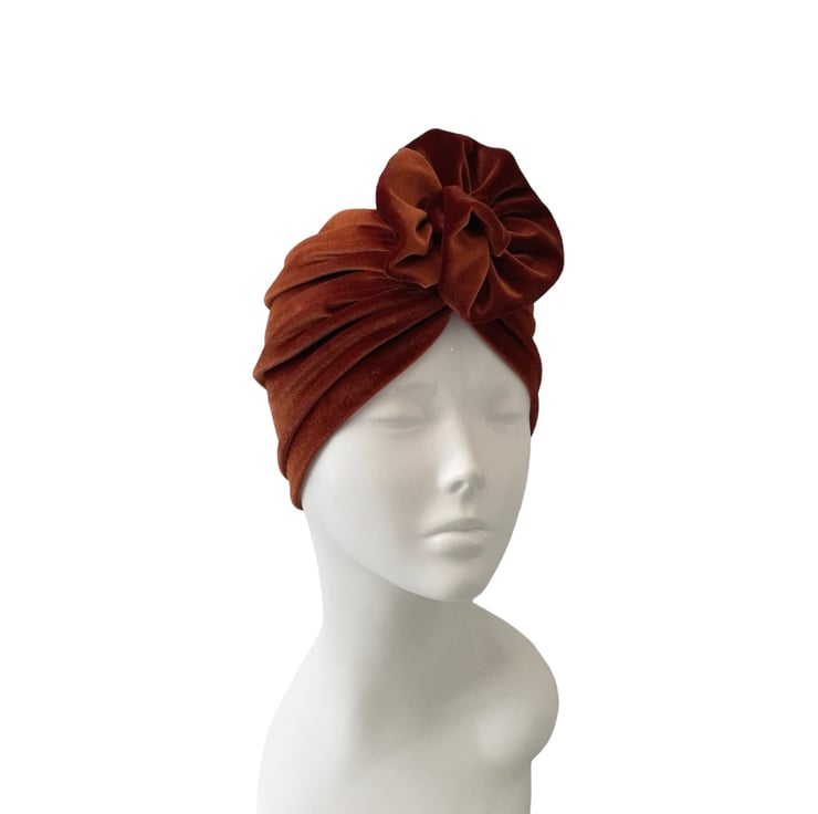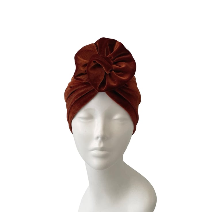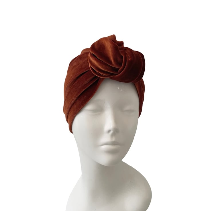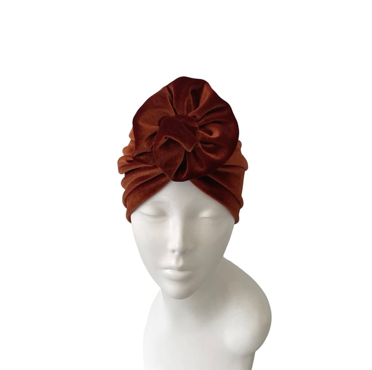 Stretch velvet turban hat for women. This is a single-layer design (it is not lined) luxury velvet hair turban.