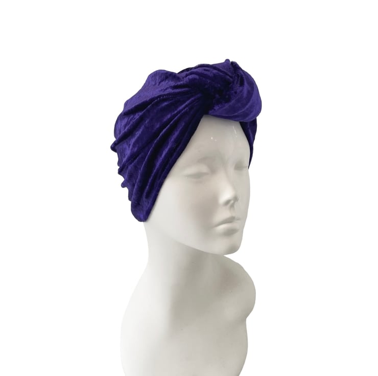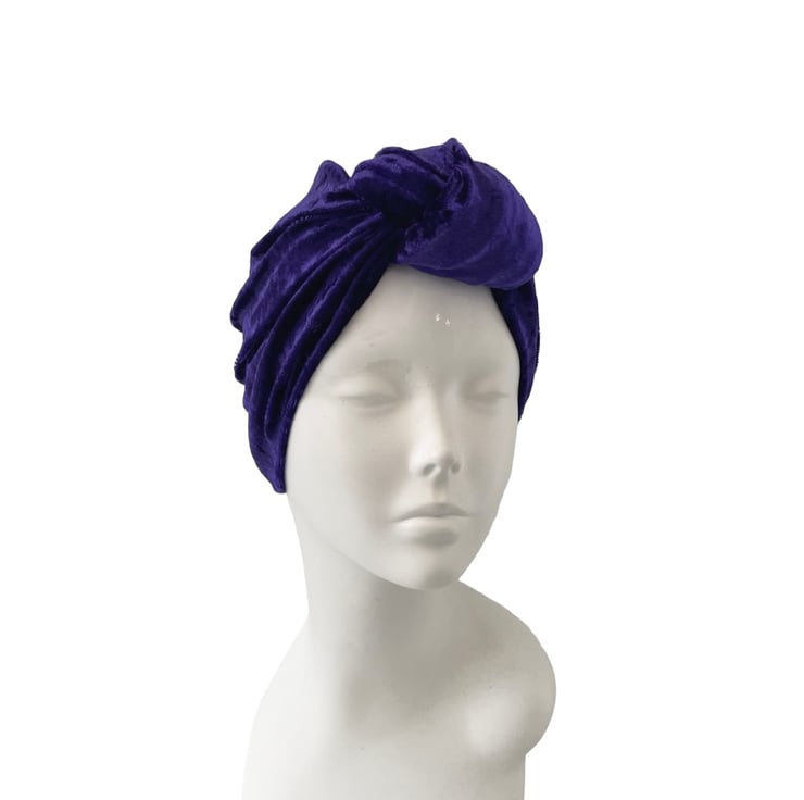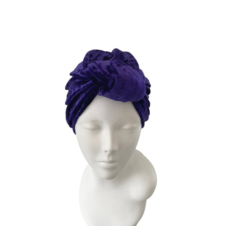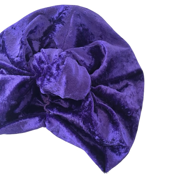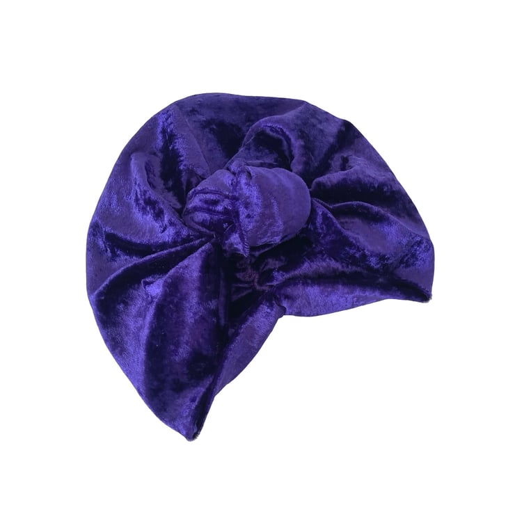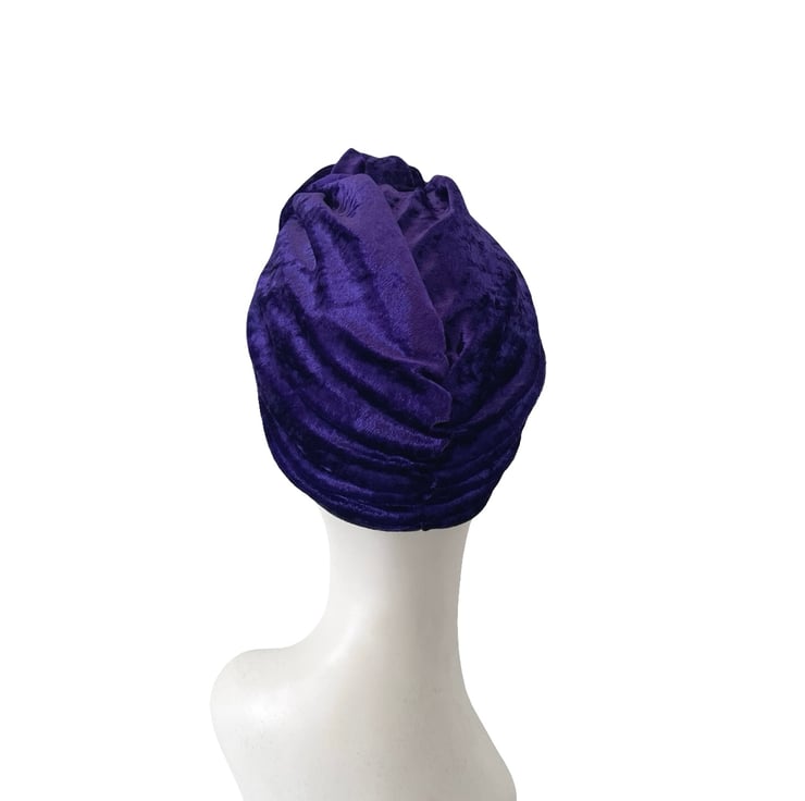 Purple velvet turban hat for women. This is a double-layer design (it is lined) soft crushed velvet hair turban.