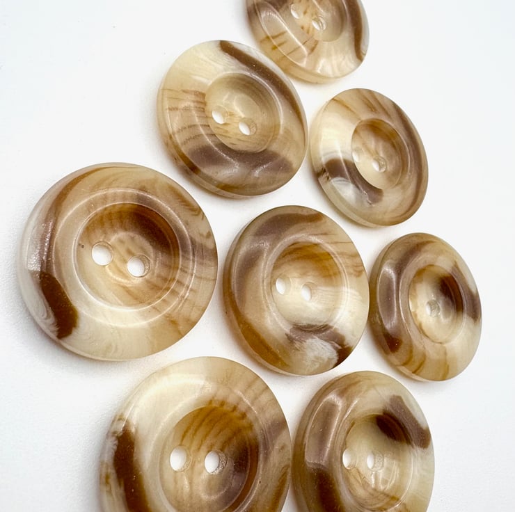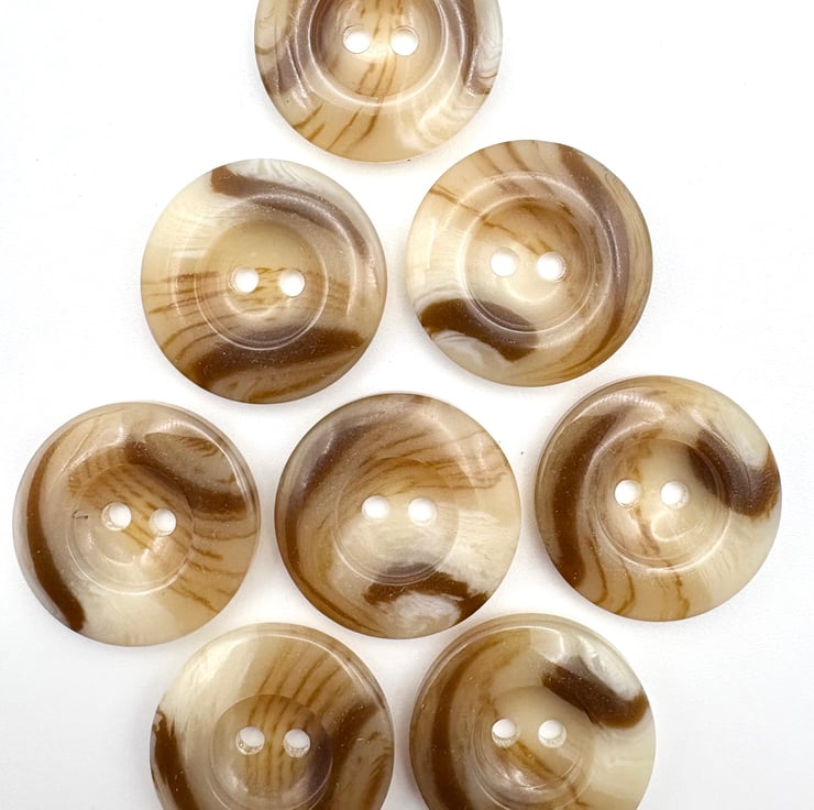 These Fabulous Cream and Brown Glossy Dish Buttons, sold in Packs of 8, are a large 28mm wide.
