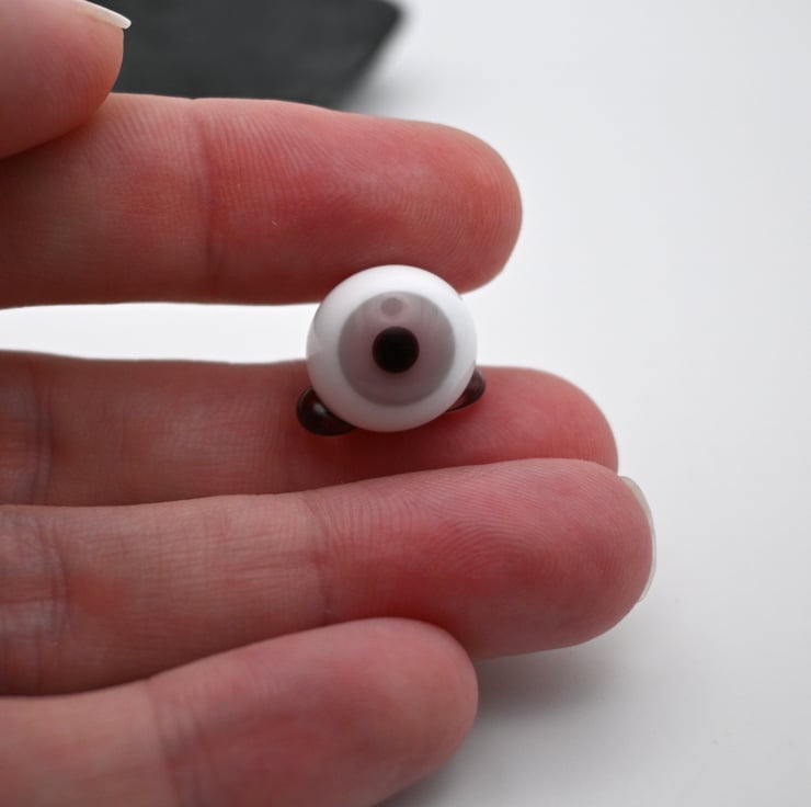 Please note you will receive the eye only, the wooden block is for display purposes only and available from most hobby stores if you wish to purchase your own for him to stand on.