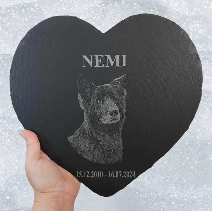Create a timeless memorial with this custom photo plaque. Crafted from durable, all-weather natural slate, it's designed to withstand the elements, making it perfect for gravesides and gardens. We use precision laser engraving to capture your photo and text in sharp, elegant detail. Available in a heart or rectangle, this plaque serves as a high-quality, lasting tribute, indoors or out, for years to come.