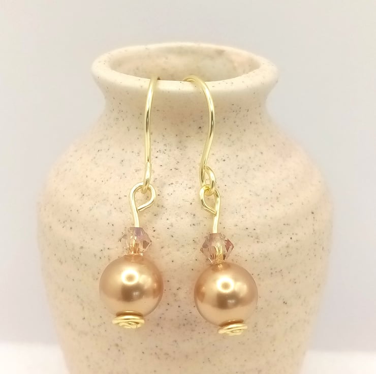 Bright Gold Swarovski Pearl Drop Earrings - Gold Pearl Dangle Earrings
