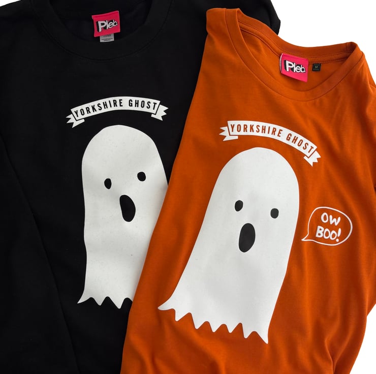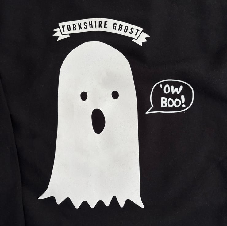 ...because halloween doesn't have to be scary! The Yorkshire ghost is perfectly daft. It's a white flock design on your choice of 8 colours.