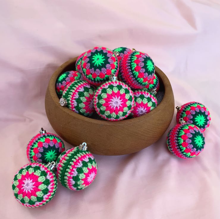 Handmade crochet Christmas baubles, made with lots of love xx Perfect for injecting colour into any home this festive season and would make a great Christmas gift.