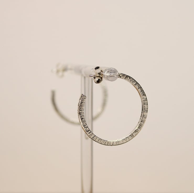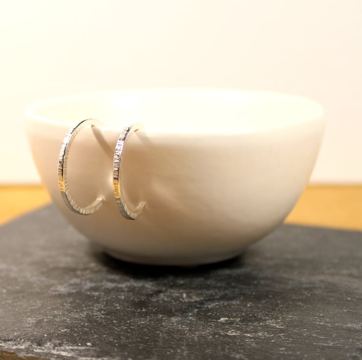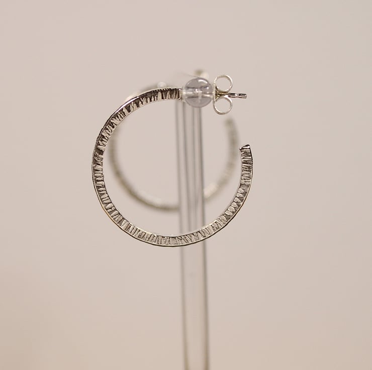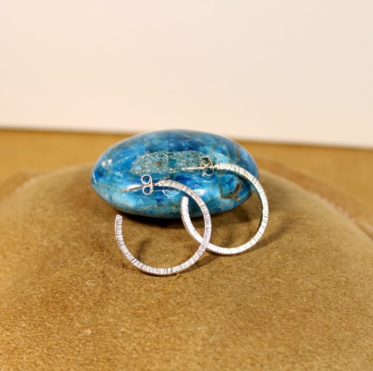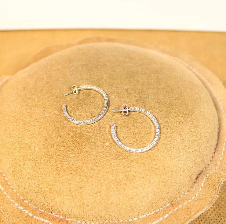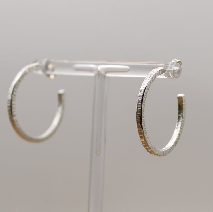 The earrings have been made from sterling silver square wire and hammered on the outer surfaces using the straight edge of a rivet hammer leaving lots of tiny lines. The hammered finish helps to reflect light and results in a lovely eye catching pair of hoops! These would make a perfect gift for a loved one, a friend or a treat for yourself!
