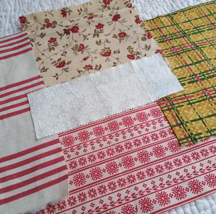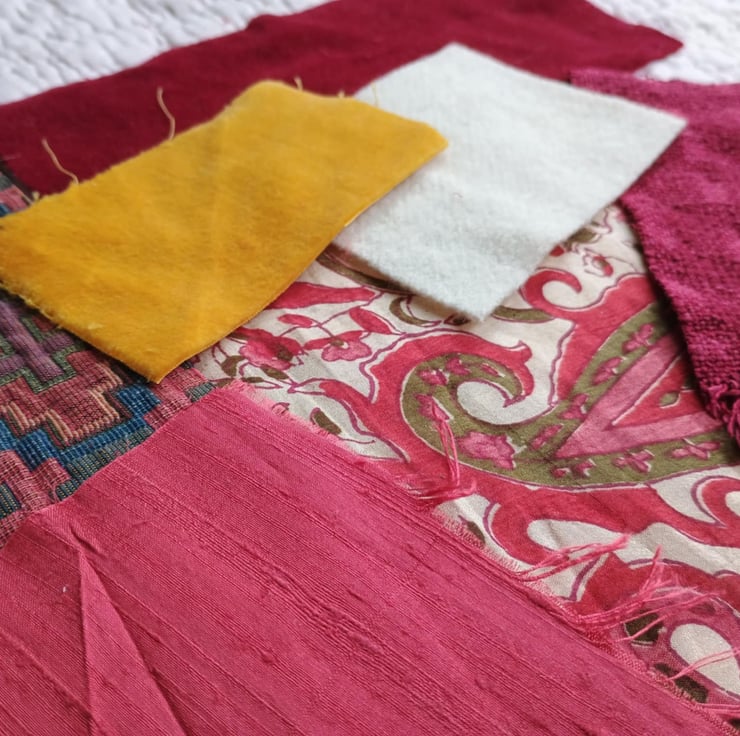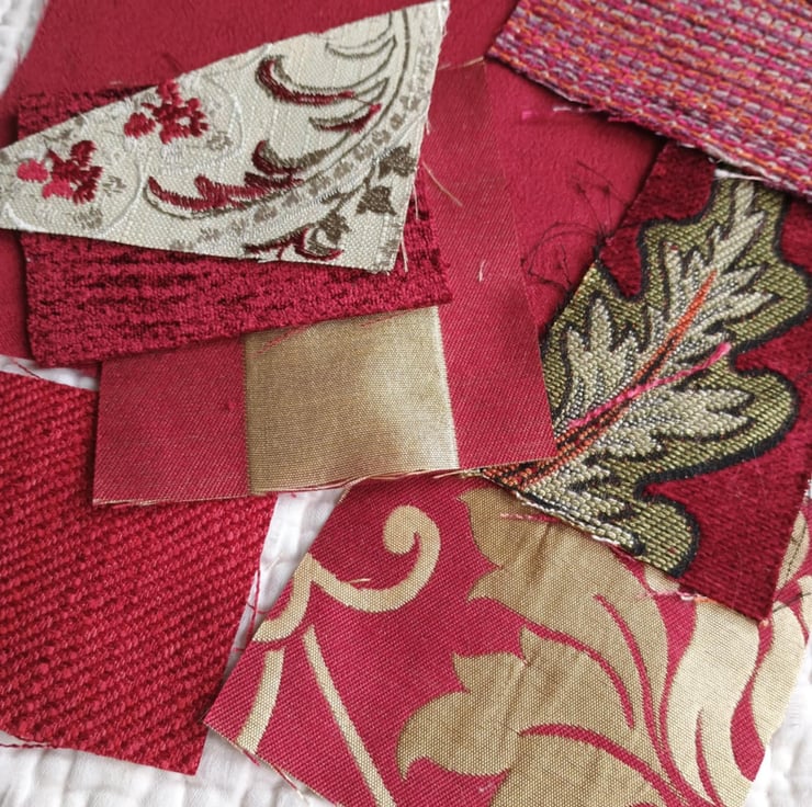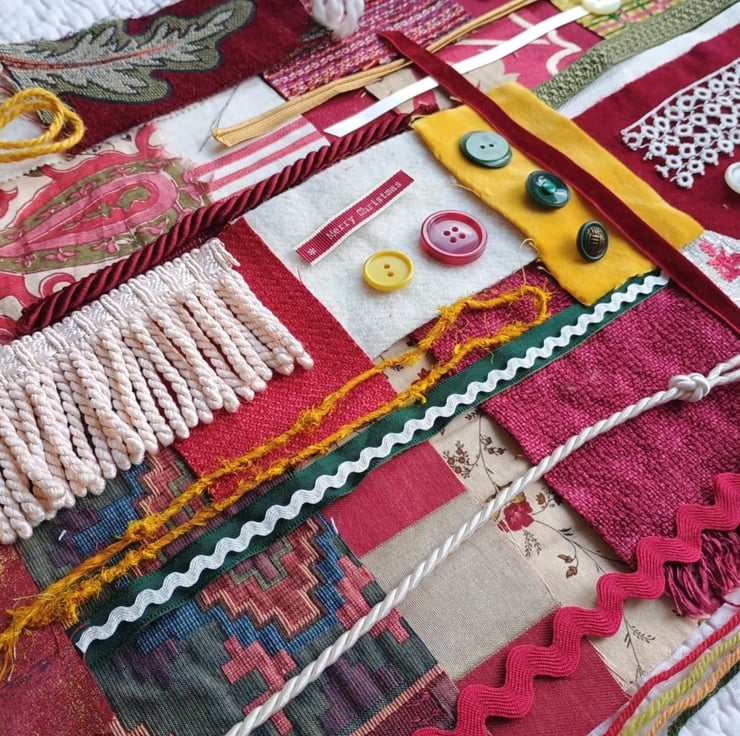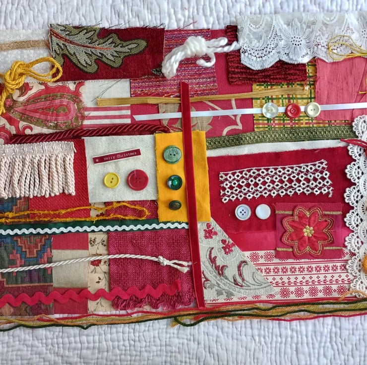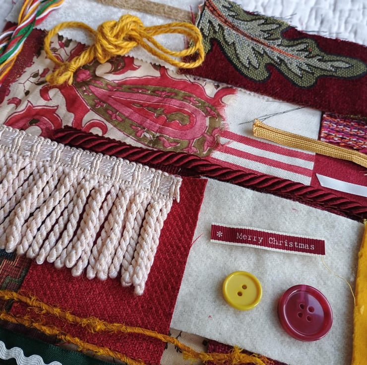 Red Velvet - my Christmas fabric inspiration bundle is full of vintage, pre-loved and factory waste textiles, haberdashery and trims. Ideal for embellishing Christmas clothes or making small craft projects, as well as slow stitching and textile art.