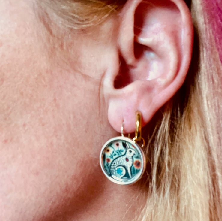 Each earring measures 2cm in diameter and has a gold hook attached.