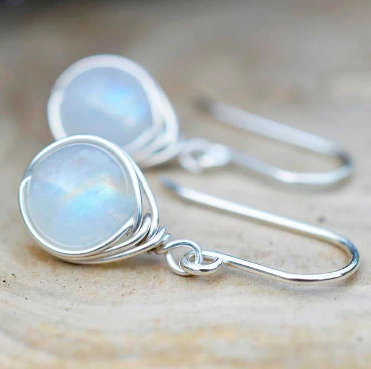 Rainbow Moonstone gemstone drop earrings, wire wrapped with sterling silver wire.