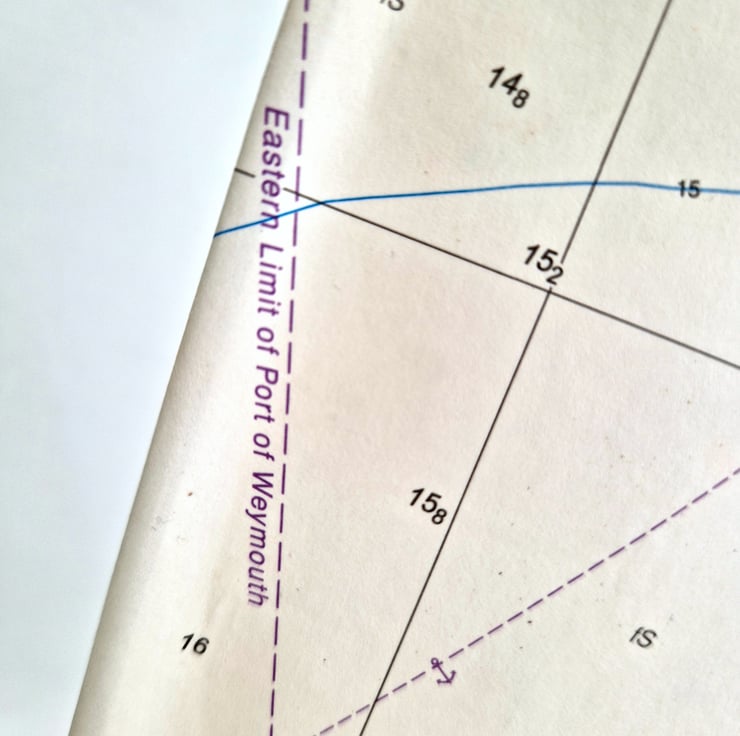 The sail shows an area of the sea around Weymouth in Dorset.