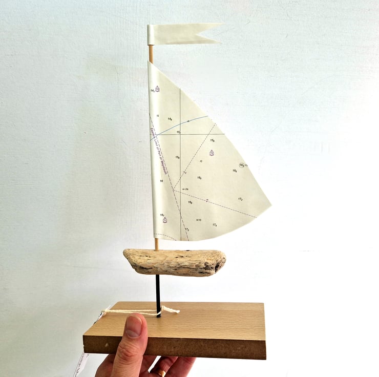 Sails are made from authentic repurposed nautical maps which have been used on voyages around the British Isles, and some may have small handwritten annotations: please check the images to view.