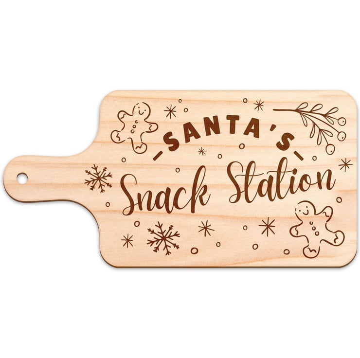 Add festive magic to your Christmas Eve with this Santa’s Snack Station wooden board featuring engraved gingerbread men, snowflakes, and holly details. Perfect for leaving Santa’s milk, cookies, and a carrot for Rudolph, this durable tray is a fun and reusable keepsake for families. Each board is laser-engraved into 6mm natural wood of your choice — maple, oak, walnut, cherry, sapele, or white ash.