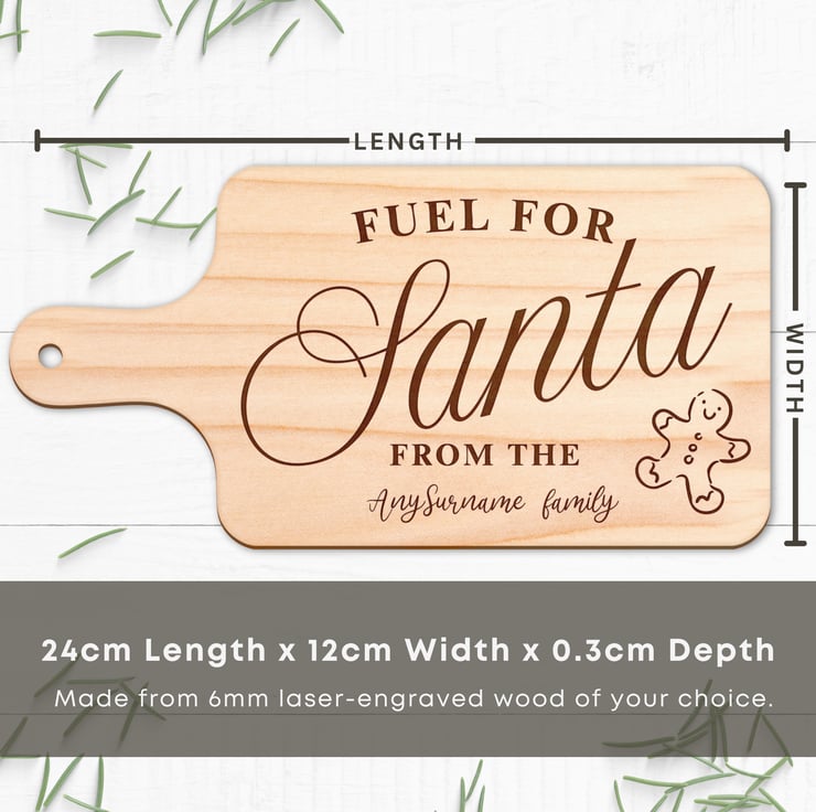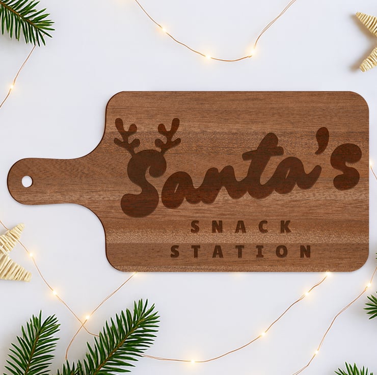 Add festive fun to your Christmas Eve setup with this Santa’s Snack Station board featuring a playful reindeer antlers design. Perfect for Santa’s milk, cookies, and Rudolph’s carrot, each one is laser-engraved on 6mm natural wood and available in maple, oak, walnut, cherry, sapele, or white ash.