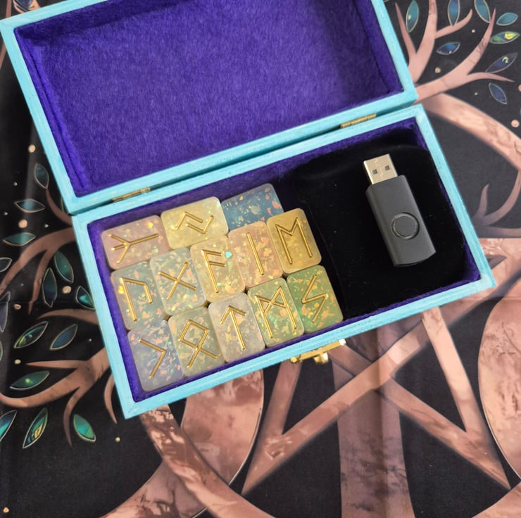 The Elder Futhark Rune Set in a decorative box, titled Aurora, is a handmade product perfect for any room in your home. The set of runes comes in a multi-colorshift design, adding a unique and metaphysical touch to your space. With the brand being handmade, you can trust the quality and authenticity of this product in aiding your spiritual journey and practices. The beautiful packaging also makes it a stylish addition to your home decor.