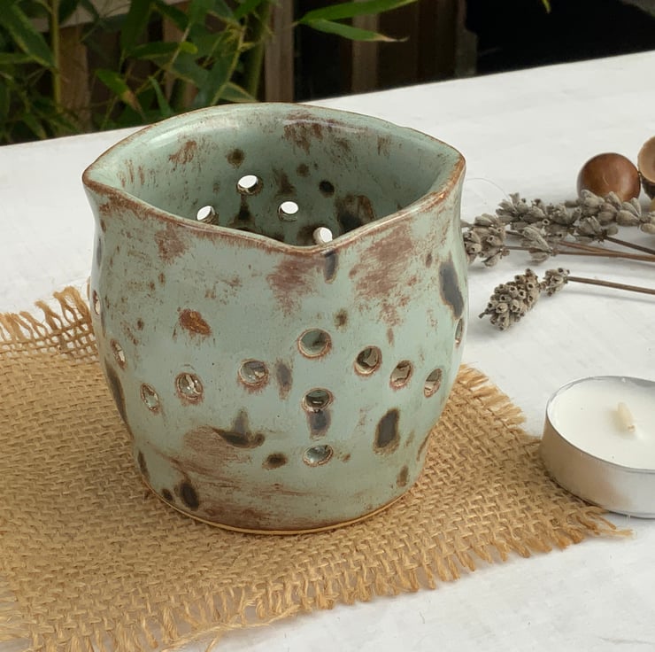 Bring a touch of charm to your home with this hand thrown candle holder. Lovingly crafted on the wheel using stoneware clay and finished with Speckled Stone Brown glaze. Hand punched holes cast a gentle glow of candlelight, filling your space with warmth and calm.