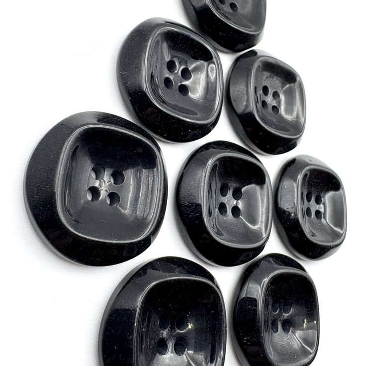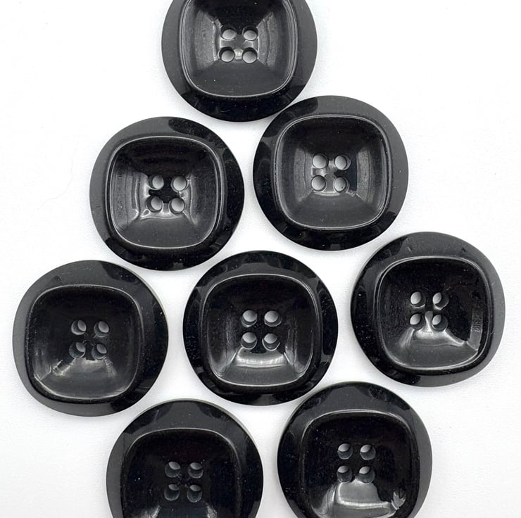 These Fabulous Black Round Dish Buttons with Square Indent, sold in Packs of 8, are a large 28mm wide.