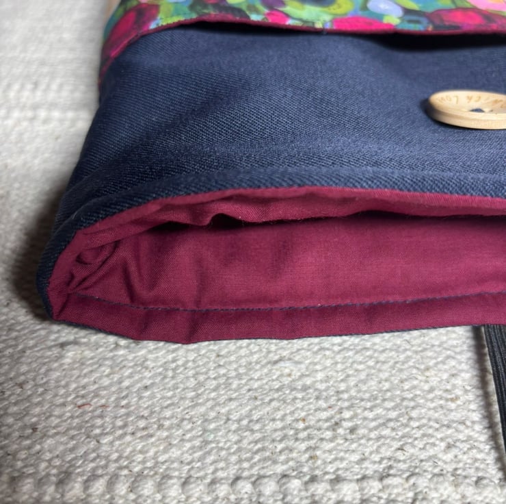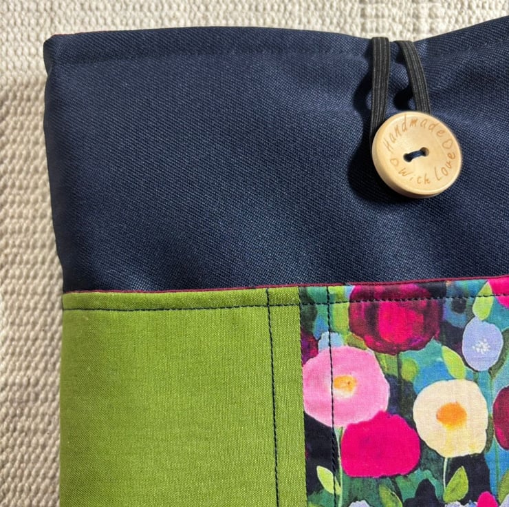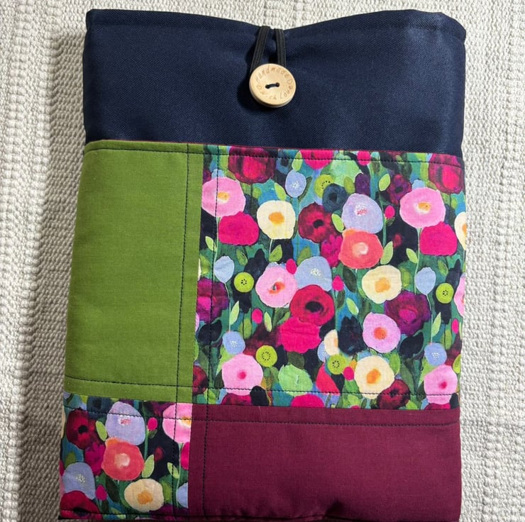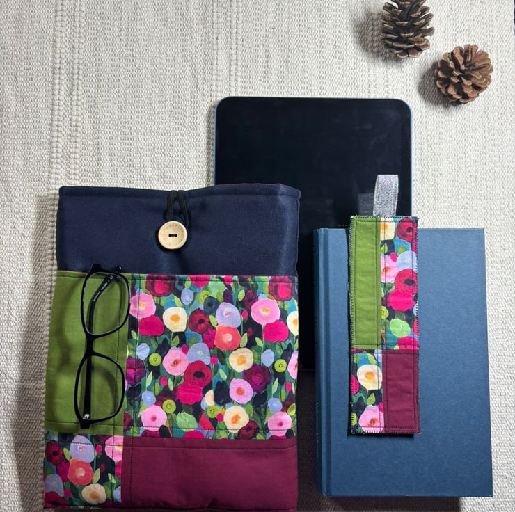 Introducing our charming quilt patchwork iPad and tablet sleeve, designed with a delightful floral cotton fabric that adds a touch of elegance to your tech! This lovely sleeve is not just visually appealing but also incredibly functional. With a dedicated pocket perfect for your glasses, phone, or pen, you can keep all your essentials neatly organised.