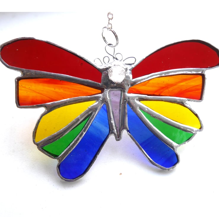 This is a rather gorgeous rainbow butterfly made with glass in all the colours of the rainbow.