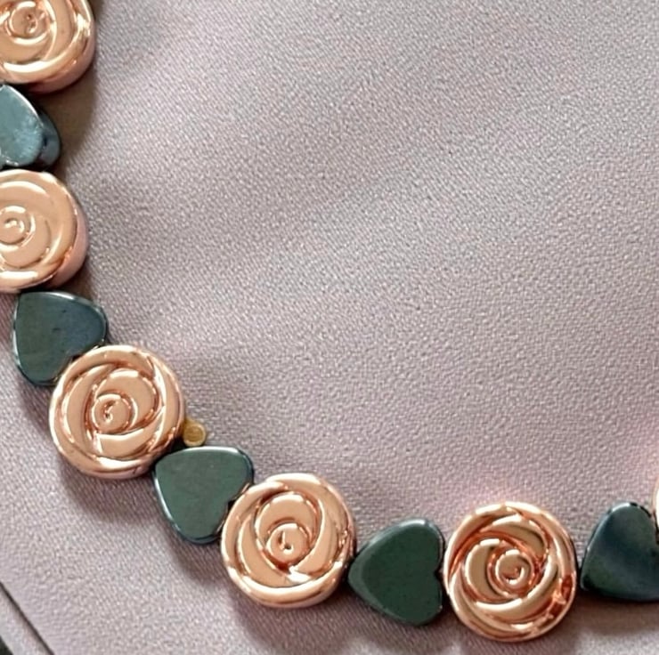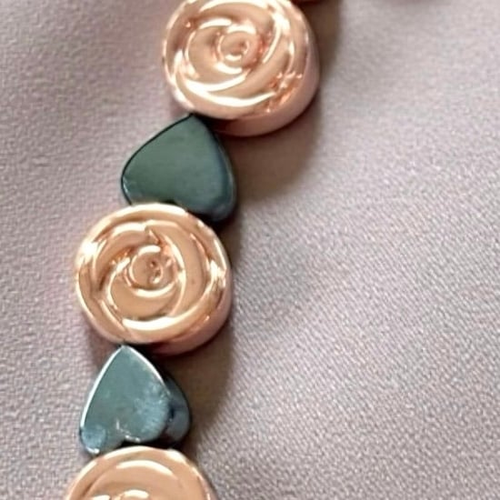 This bracelet has been handmade using 6mm Rose Gold plated Hematite Rose Discs and natural Hematite love hearts, fastened with a lobster clasp it is made to fit a 7” wrist, I can custom make to fit smaller or larger wrists, please send me a message after purchase with your wrist size, this bracelet makes a perfect gift for someone you love, it will come perfectly gift wrapped in pretty tissue and an organza gift bag.