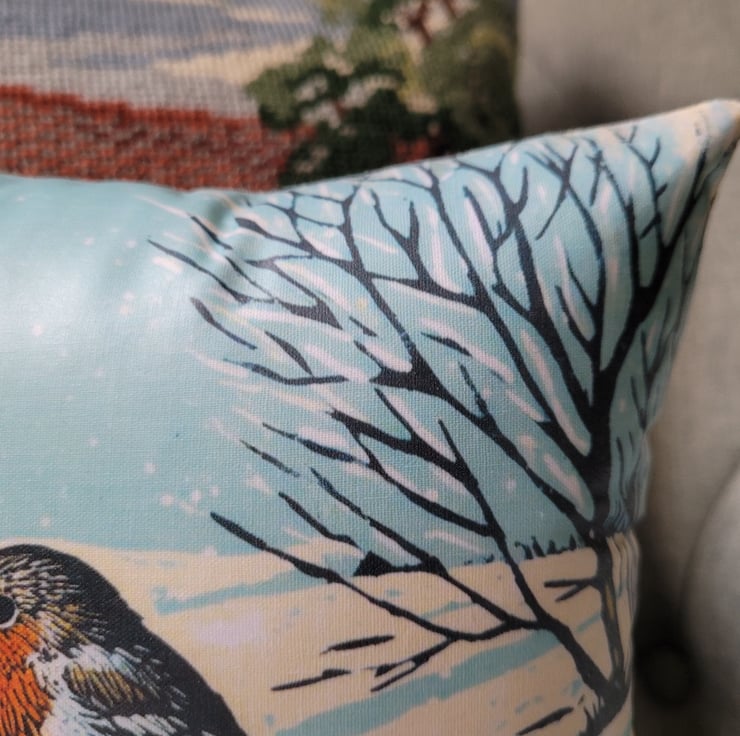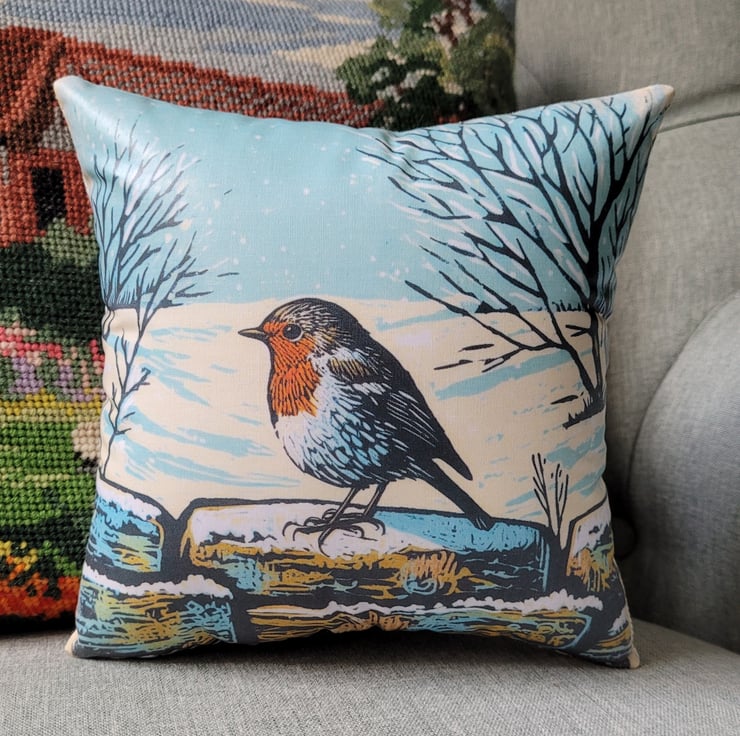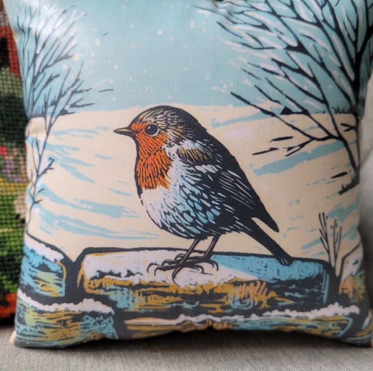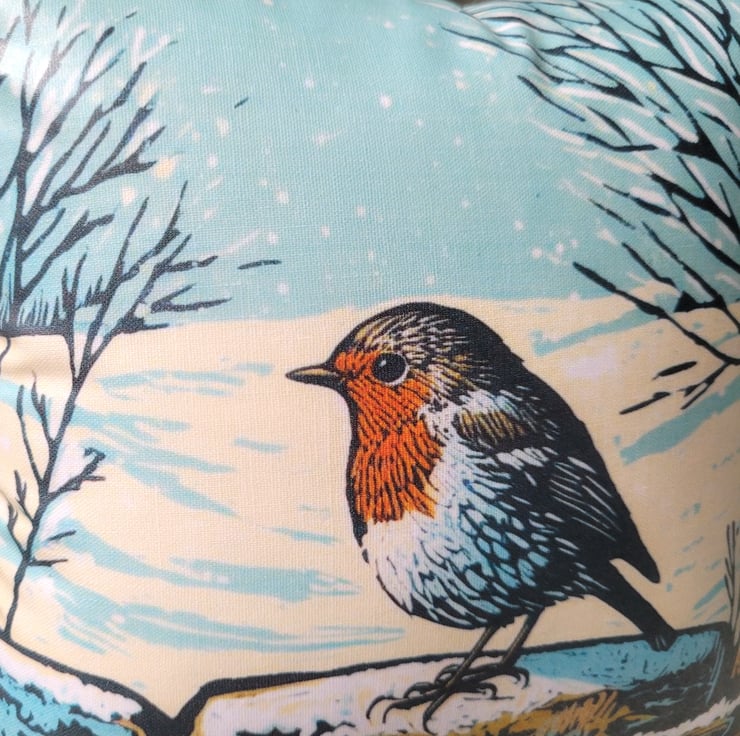 This is such an adorable Robin deisgn which I've hand printed onto fabric and made into a decorative cushion for Christmas.