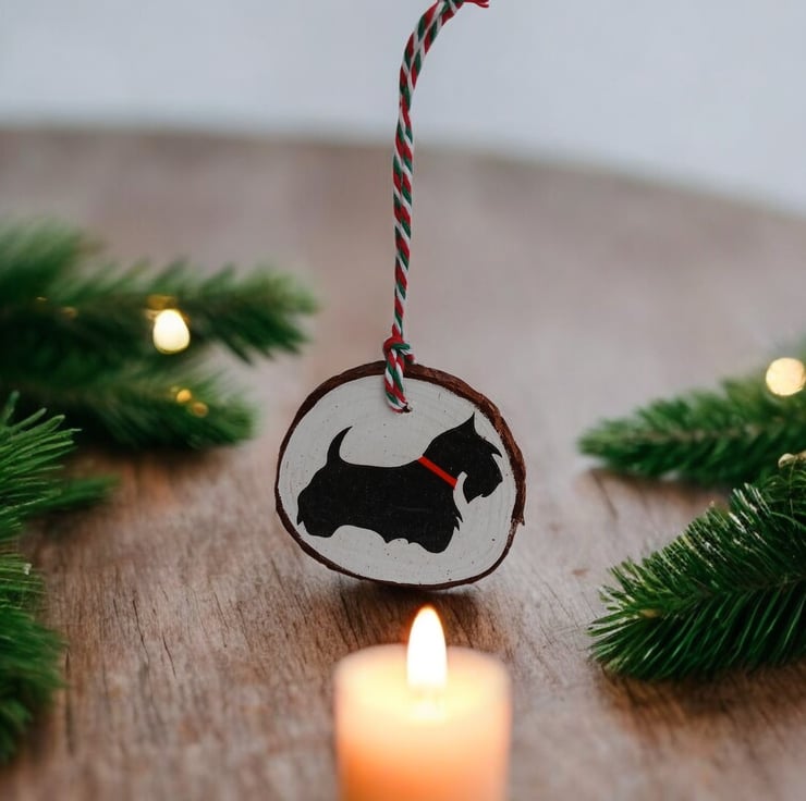 Add a charming festive touch to your Christmas tree with a wooden slice ornament. Hand-painted, decoupaged, sealed, and completed with a festive holiday hanging loop, it's the perfect decoration.