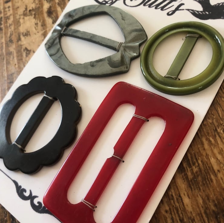 4 Vintage Buckles - Grey, Green, Black & Red, Great fro dressmaking, bag making or even use them as a scarf slide!