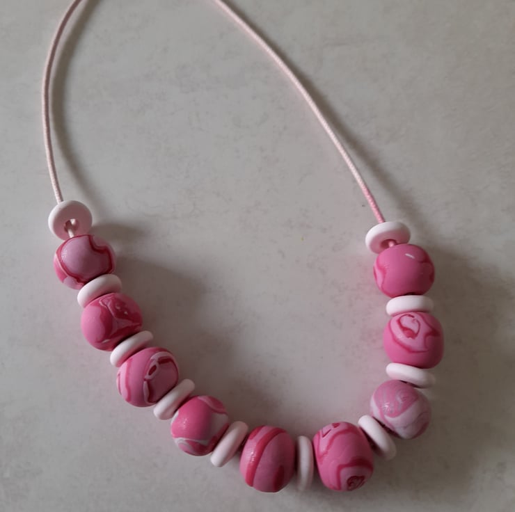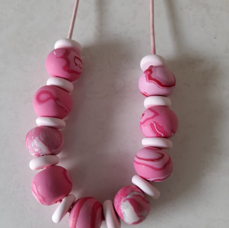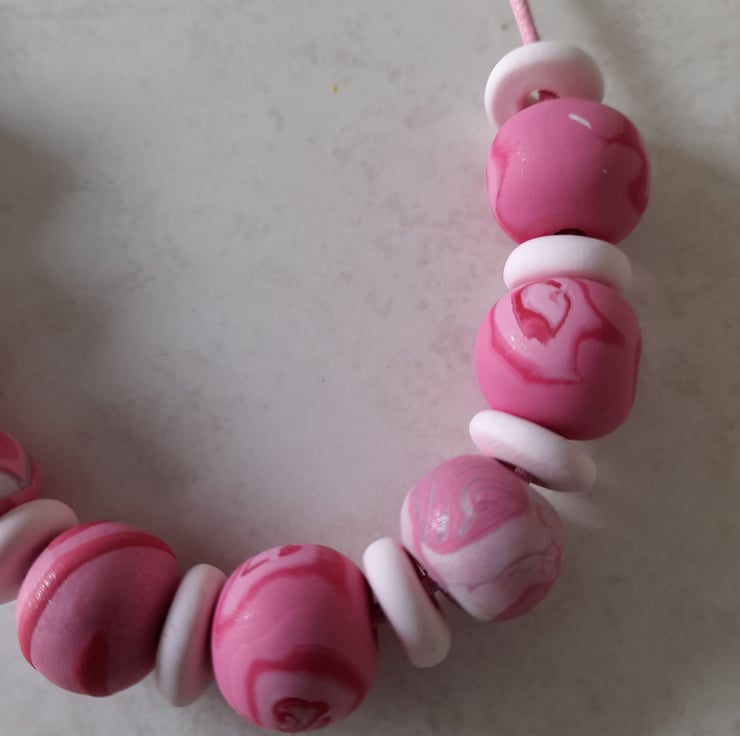 POLYMER CLAY PINK MARBLE NECKLACE - FREE UK SHIPPING